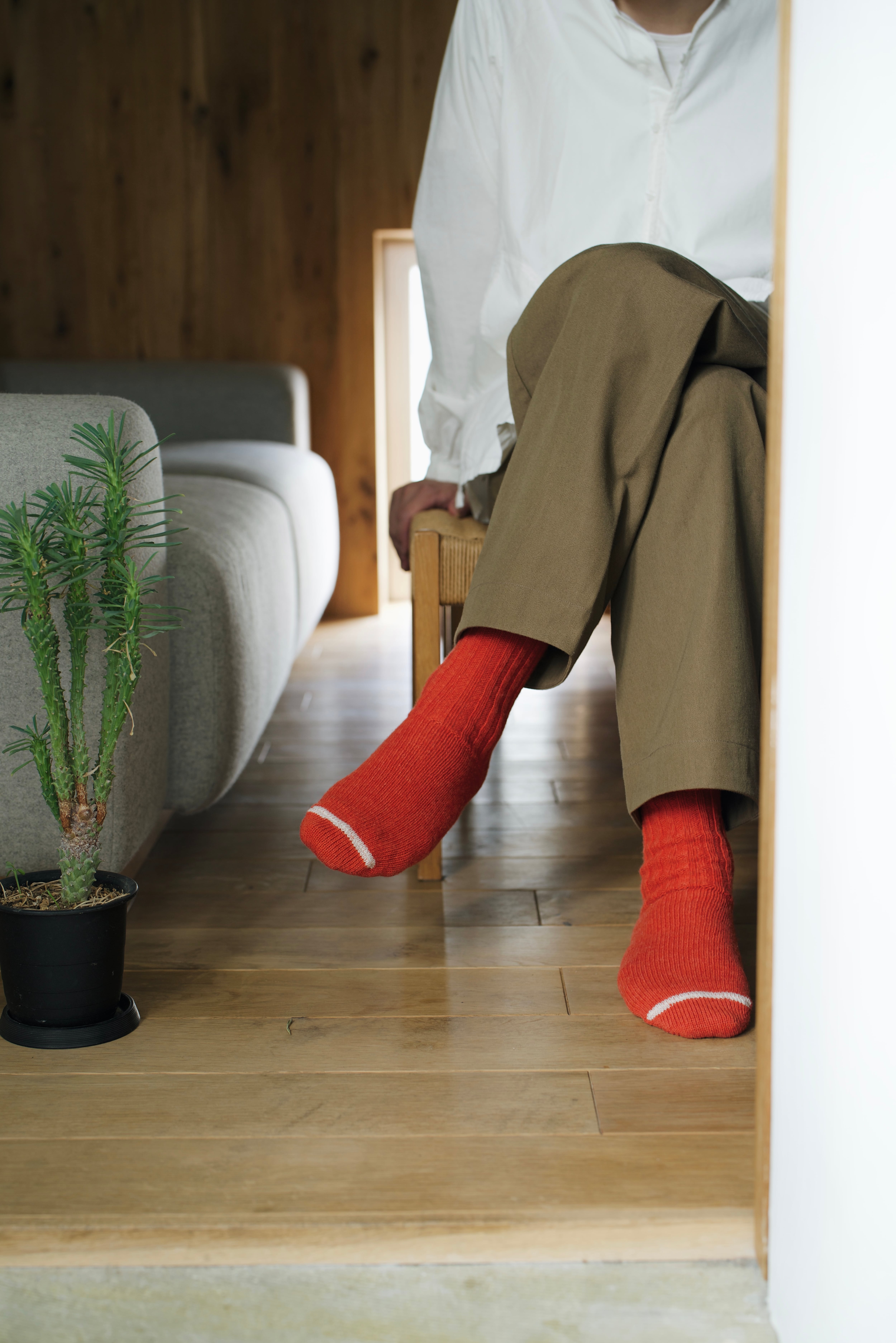 柔らかく、かさ高いウールを使用した軽くてあたたかいリブソックス。